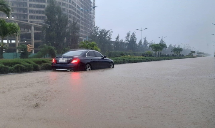 Heavy rain caused Vo Nguyen Giap street to be flooded.