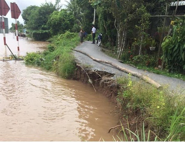 Landslide of Cai San canal, My Thanh ward, Long Xuyen city. (Photo: Thanh Sang / VNA)