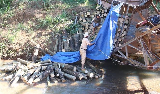 According to the initial information, at about 15:30 p.m. on December 3, the motorcycle loaded with rubber wood was driven by Le Minh Tuan (39 years old, living in Bu Nho commune, Phu Rieng district). in Phu Rieng commune road, from Phu Rieng district to Ho Chi Minh city.