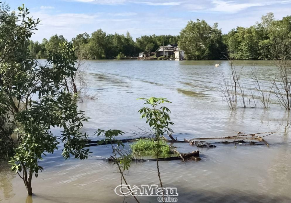 Mr. Dinh Van Ngon, who has lived here for many years, said that before, the Bien Truong River was very small, his house was built along the riverbank, but it was eroded several times. “The first time it was eroded around 2-3 am, the second time the whole house was eroded into the river. Seeing that, I built my house on a square piece of land for safety,” Mr. Ngon shared.