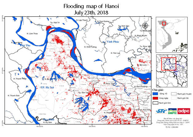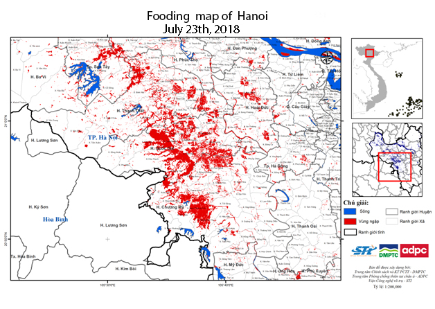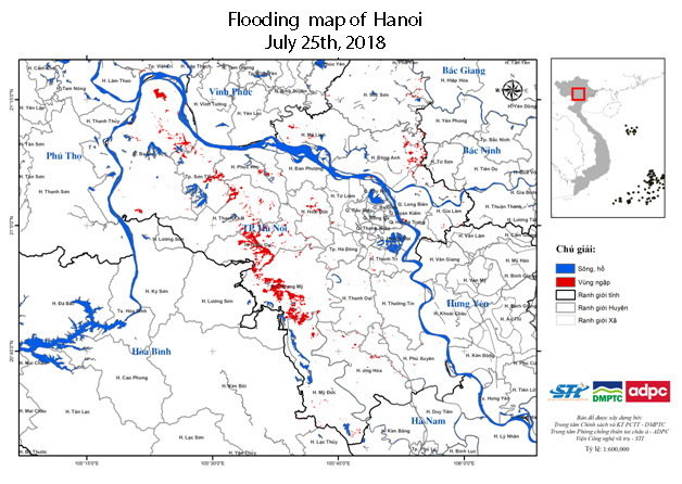 According to the report of the Steering Committee for Natural Disaster Prevention and Control and Search and Rescue of Chuong My District, Hanoi, at 5p.m of August 1st, due to the influence of heavy rain, the water level of Bui river measured in Yen Duyet was 7.22 m, 0.22m higher than its third warning level.