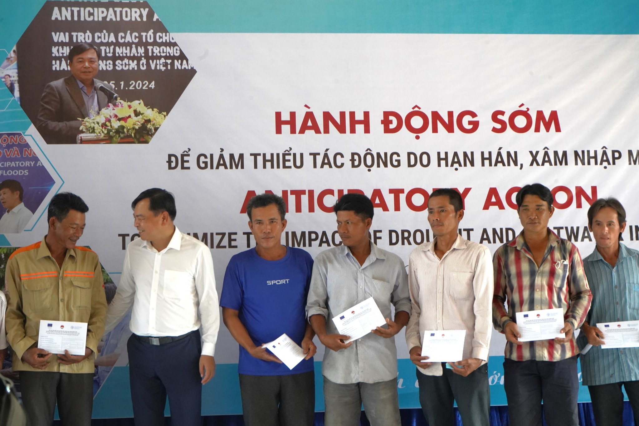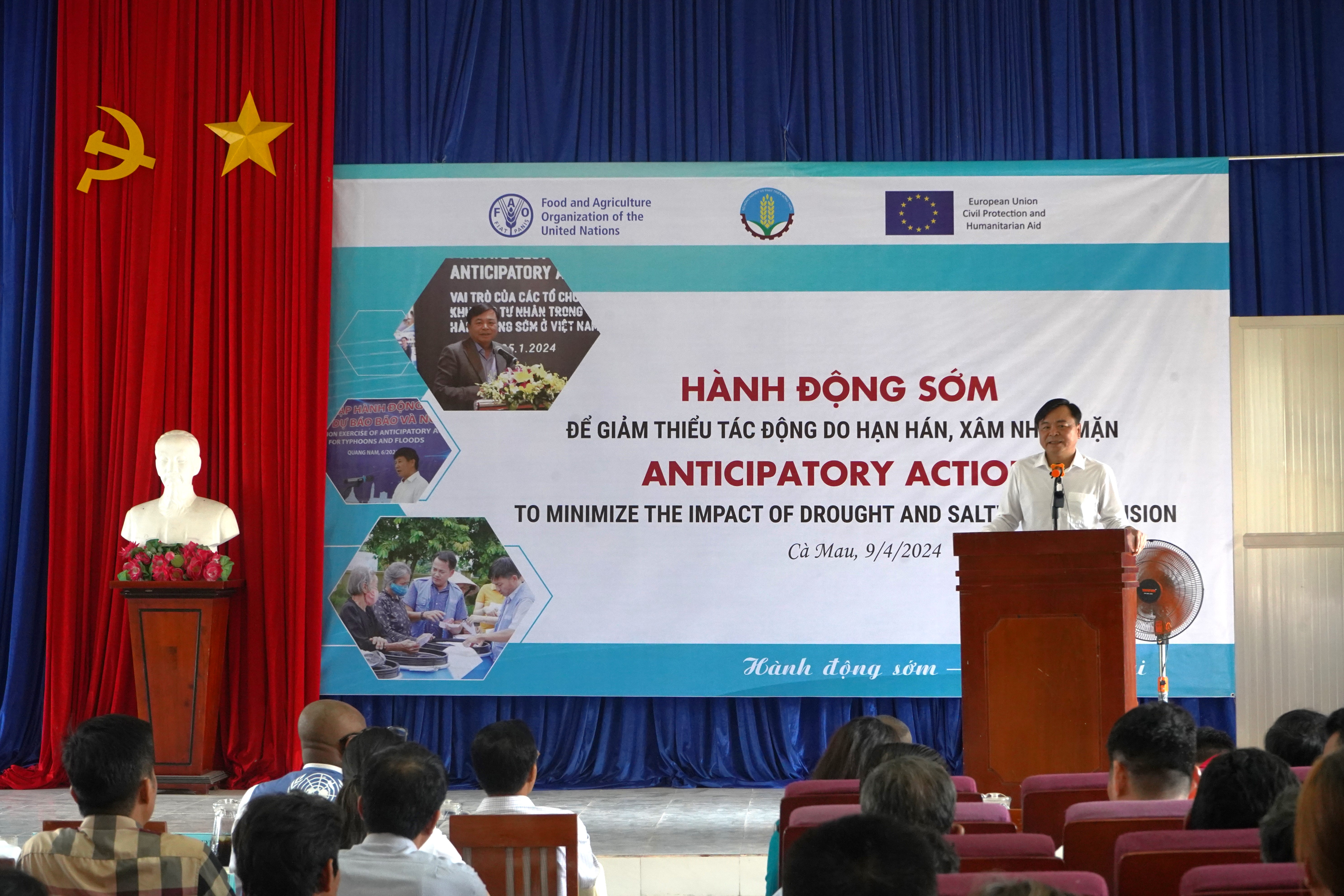 Speaking at the opening event to activate early action in Ca Mau, Deputy Minister of Agriculture and Rural Development Nguyen Hoang Hiep said: Currently, due to the impact of El Nino, drought and saltwater intrusion have affected the many socio-economic fields and people's lives in the Mekong Delta region in general and Ca Mau province in particular, such as: subsidence on some traffic routes, people's livelihoods are turned upside down. , rural areas are lacking for living and production,... causing obstacles in people's lives, especially for households in difficult circumstances. Implement the Prime Minister's direction in Directive No. 11/CT-TTg dated April 1, 2024 on strengthening the implementation of measures to prevent and combat heat, drought, water shortage, and saltwater intrusion. Through assessing the actual situation in Ca Mau province, the Ministry of Agriculture and Rural Development in coordination with FAO in Vietnam decided to activate early action to support difficult households in 04 communes (Khanh An, Khanh Thuan - U Minh district; Khanh Hung - Tran Van Thoi district; Bien Bach - Thoi Binh district). More than 1,000 households will receive cash support in two rounds (the first time in April and the second time in May), with a support level of 6 million for each household with 3 or more members. Although this amount of money is not much, I hope it will help people somewhat during this difficult period caused by natural disasters such as drought and saltwater intrusion.