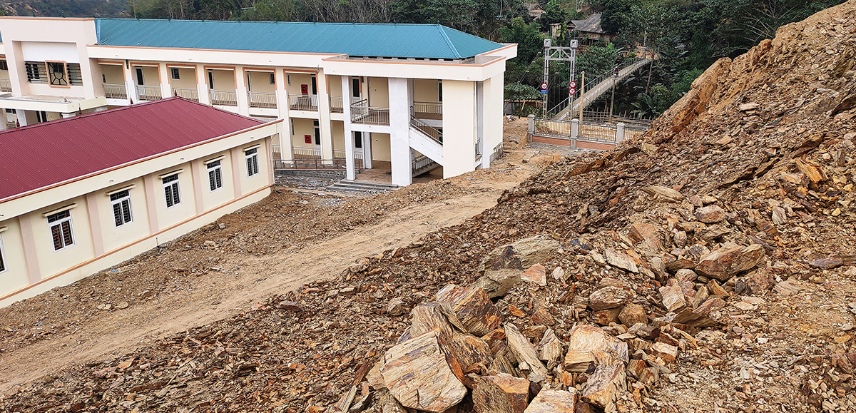 Previously, from January 1, 2021, during the construction of the anti-landslide embankment at Trung Thanh semi-boarding school area, there was a phenomenon of cracked mountains, landslides on high mountains. down to the school area.