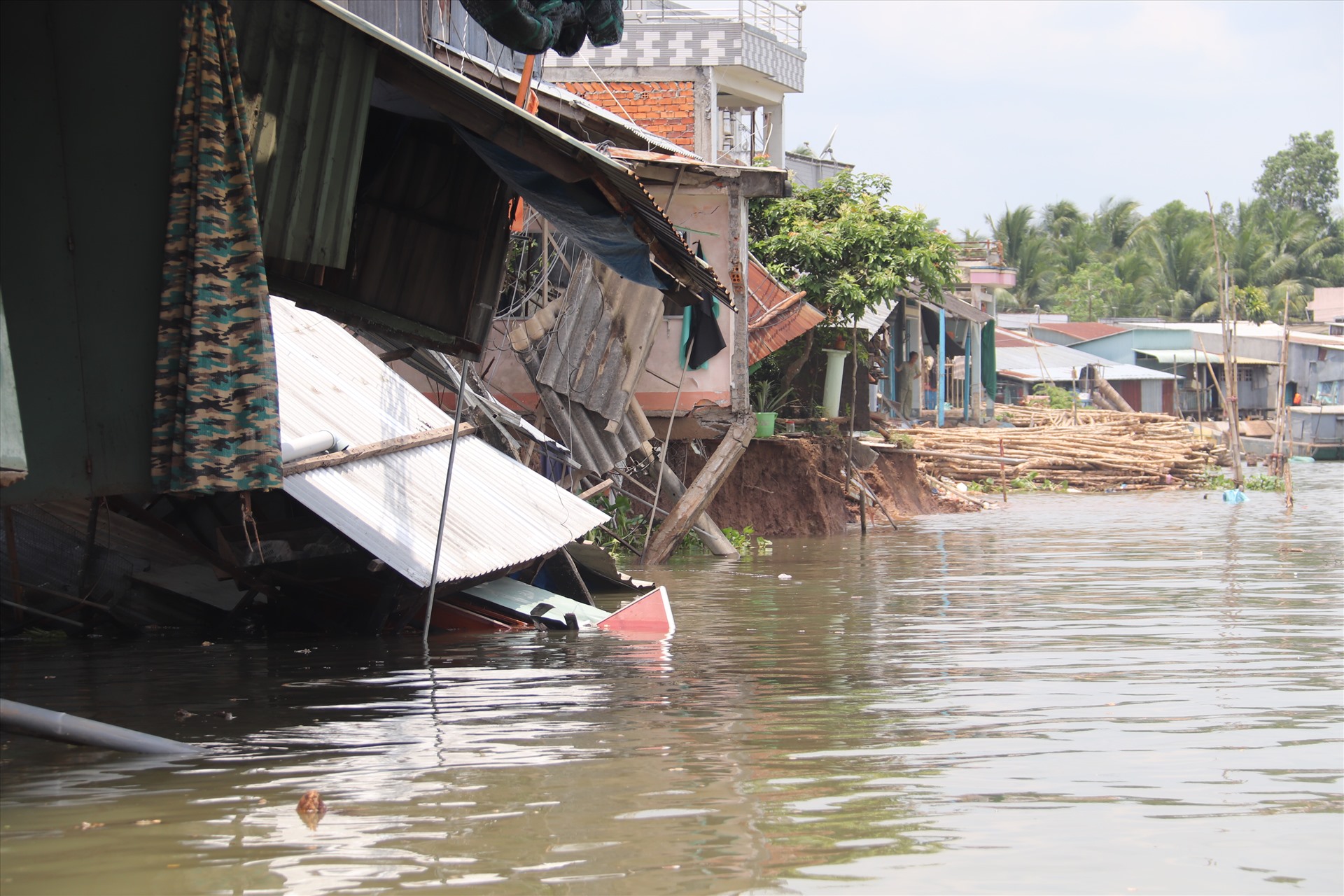 Across the Mekong Delta localities, landslides are fierce and overwhelming. The whole region has at least 50 landslides recorded since the beginning of the year. Although not causing damage to people, but has made people living along the river always worried. Photo: A landslide scene in Cai Rang District, Can Tho City.
