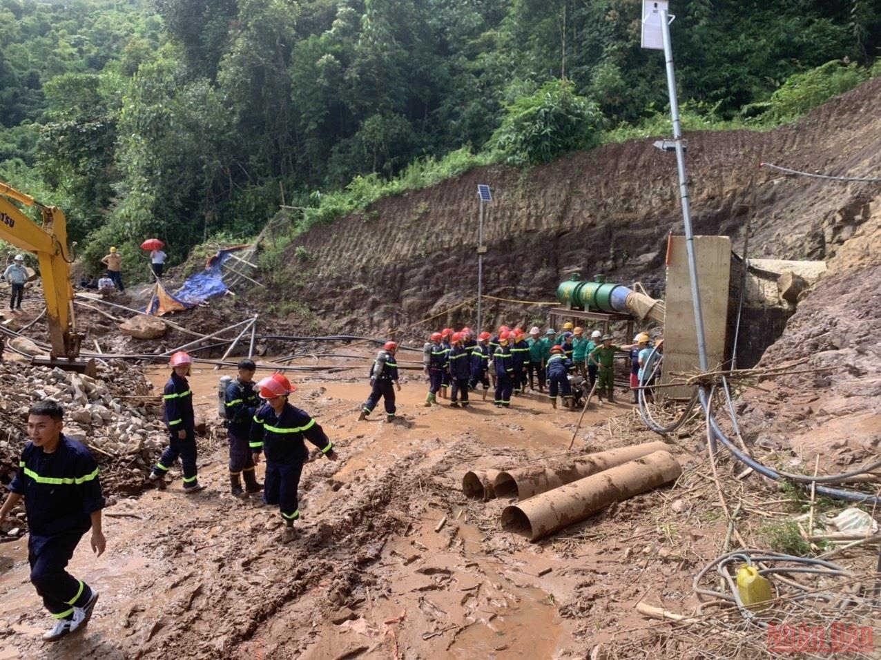 The functional forces made every effort to search and rescue people trapped in the hydroelectric tunnel in Phi Linh 1 village, Si Pa Phin commune, Nam Po district, Dien Bien province