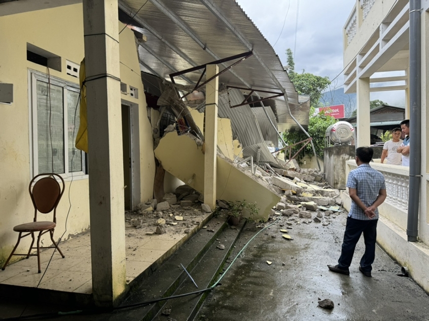 Specifically, prolonged heavy rain caused soil and rocks on the positive slope to slide down, collapsing 4 official accommodation rooms of the Nam Ban Commune Health Station (Meo Vac district), damaging many items inside. The estimated damage was up to 90%, equivalent to about 850 million VND.
