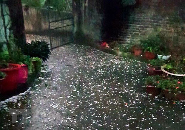 Hail appeared in Cam Duong commune, Lao Cai city.