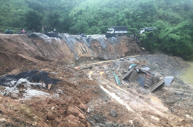 The landslide location is about 1 km from the headquarters of Nam Ka Commune People's Committee, the landslide point is 27 m long, 9-10 m wide, causing local traffic jams.
