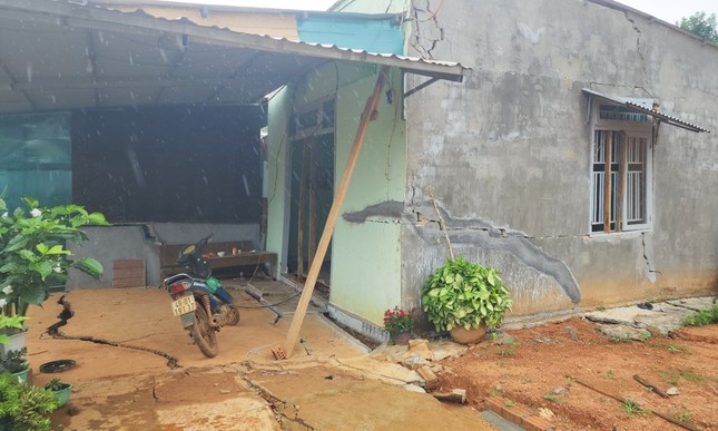 In the area of Mr. Do Van Tai's house, there was a subsidence of up to 1.5m, causing cracks in the walls and floor, causing the house to be tilted and completely damaged. Nearby, the house of Mr. Do Van Dam's family had cracked walls and sidewalks.