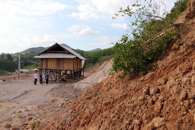 The area at risk of landslide was located just behind the headquarters of the Dong K’Noi Commune People's Committee, with many cracks appearing on the positive slope tens of meters high due to the impact of the recent heavy rains.