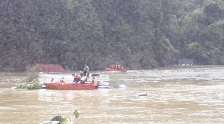 Authorities participate in a search and rescue exercise on the river in Hung Son commune, Trang Dinh.