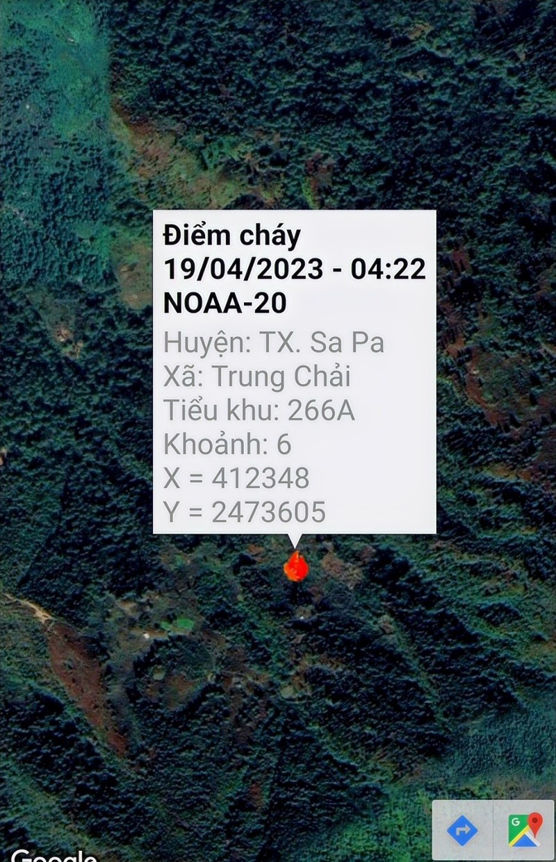 Fire spot in Trung Chai commune on satellite map.