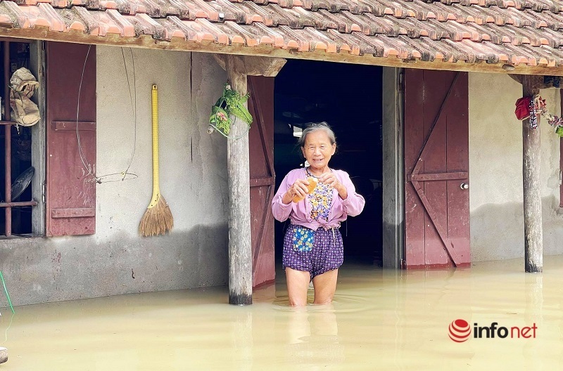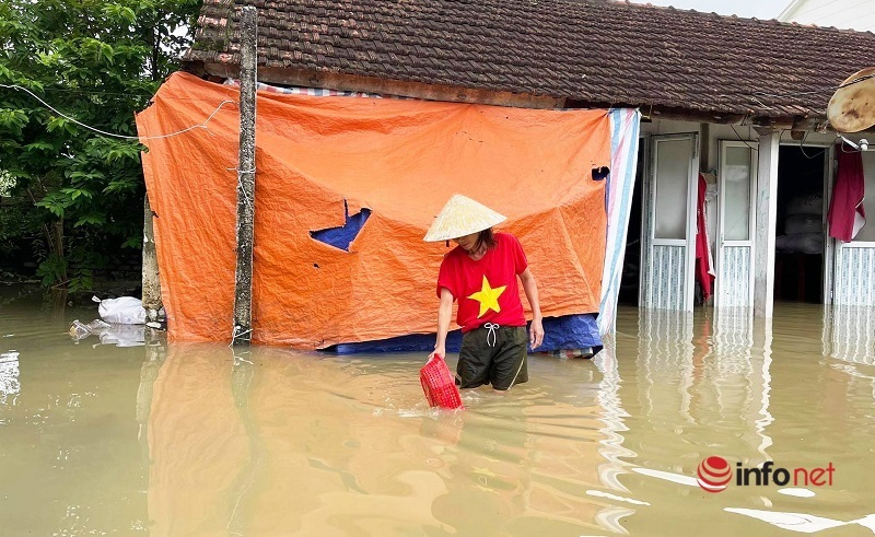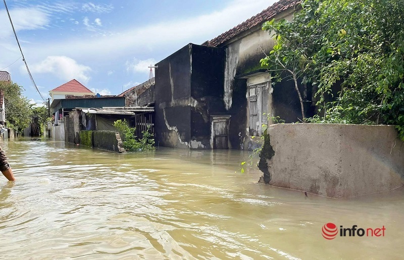 Mr. Doan Khac Cong, head of Hong Yen village (Quynh Hong commune) said that 3 days ago, within 5 hours, the water rose very quickly from 30 - 50cm, causing people to turn back and cause flooding. Totally divided, life completely turned upside down.