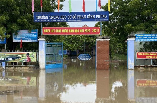 School in Phuoc Hai commune, Ninh Phuoc district was flooded in. (Photo: Cong Trials / VNA)