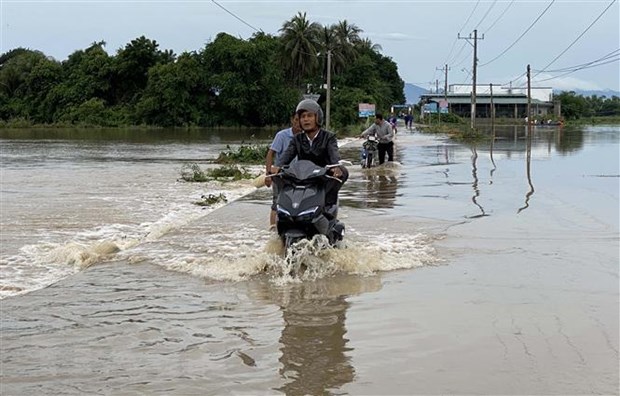 The road to Thanh Tin village, Phuoc Hai commune, Ninh Phuoc district was overflowed, fast flowing, making it difficult for the people to circulate. (Photo: Cong Trials / VNA)
