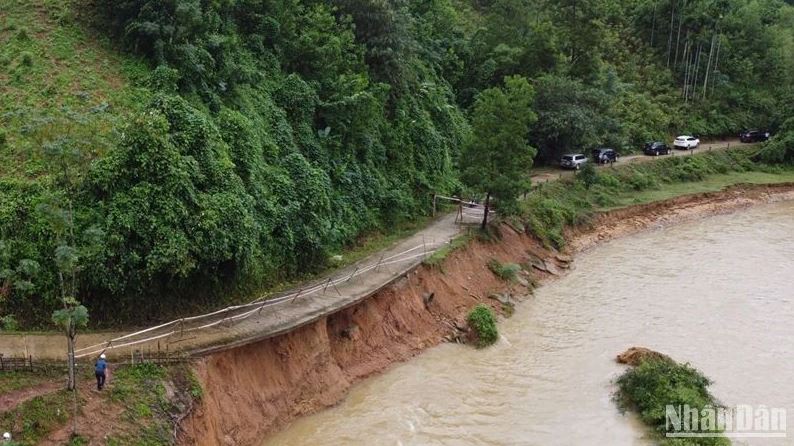 Floods and rains caused serious landslides on the road from the People's Committee of Son Bao commune to Nuoc Bao village, Son Bao commune, Son Ha mountainous district.