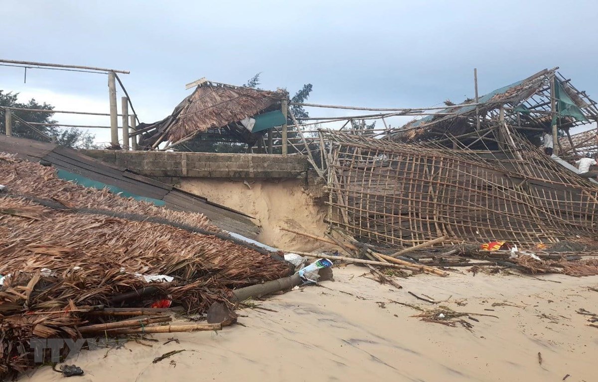 On October 29, in Gio Hai commune, Gio Linh district, Quang Tri province, a coastal landslide occurred due to high waves, causing 9 houses and eateries on the coast to collapse, causing damage of over 50%.