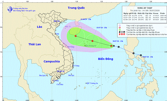 It is forecasted that in the next 24 hours, the low pressure area will move in the Northwest direction, each hour is 15-20km and is likely to become a tropical depression (tropical low pressure). By 13:00 on July 31, the position of tropical low-rise was at about 17.2 north latitude; 113.2 degrees East longitude, about 100km northeast of Hoang Sa archipelago. The strongest wind near the center of the tropical low pressure level 6 (40-50km / hour), shock level 8. In the next 24 to 48 hours, the tropical low pressure moves to the Northwest, 15-20km per hour and is able to strength.