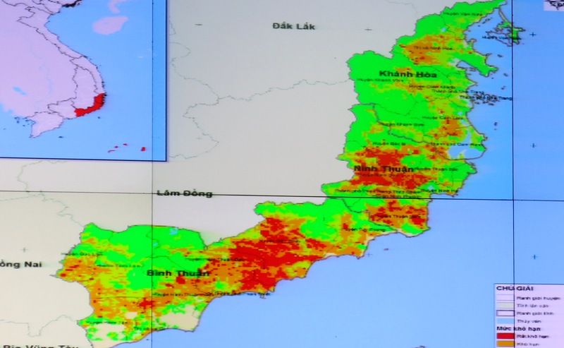 Map of drought and salinity intrusion in the Central Highlands, South Central and Mekong Delta