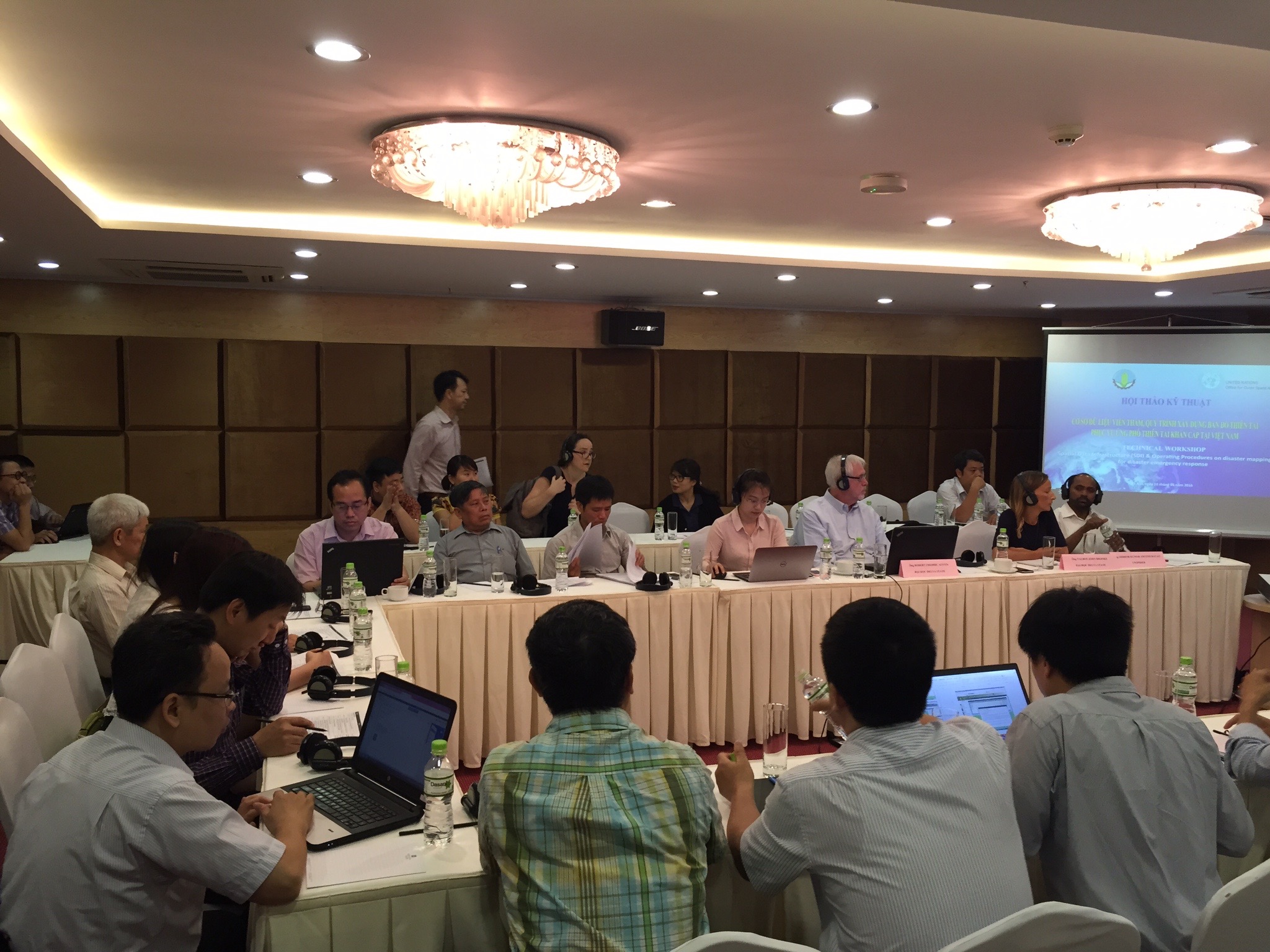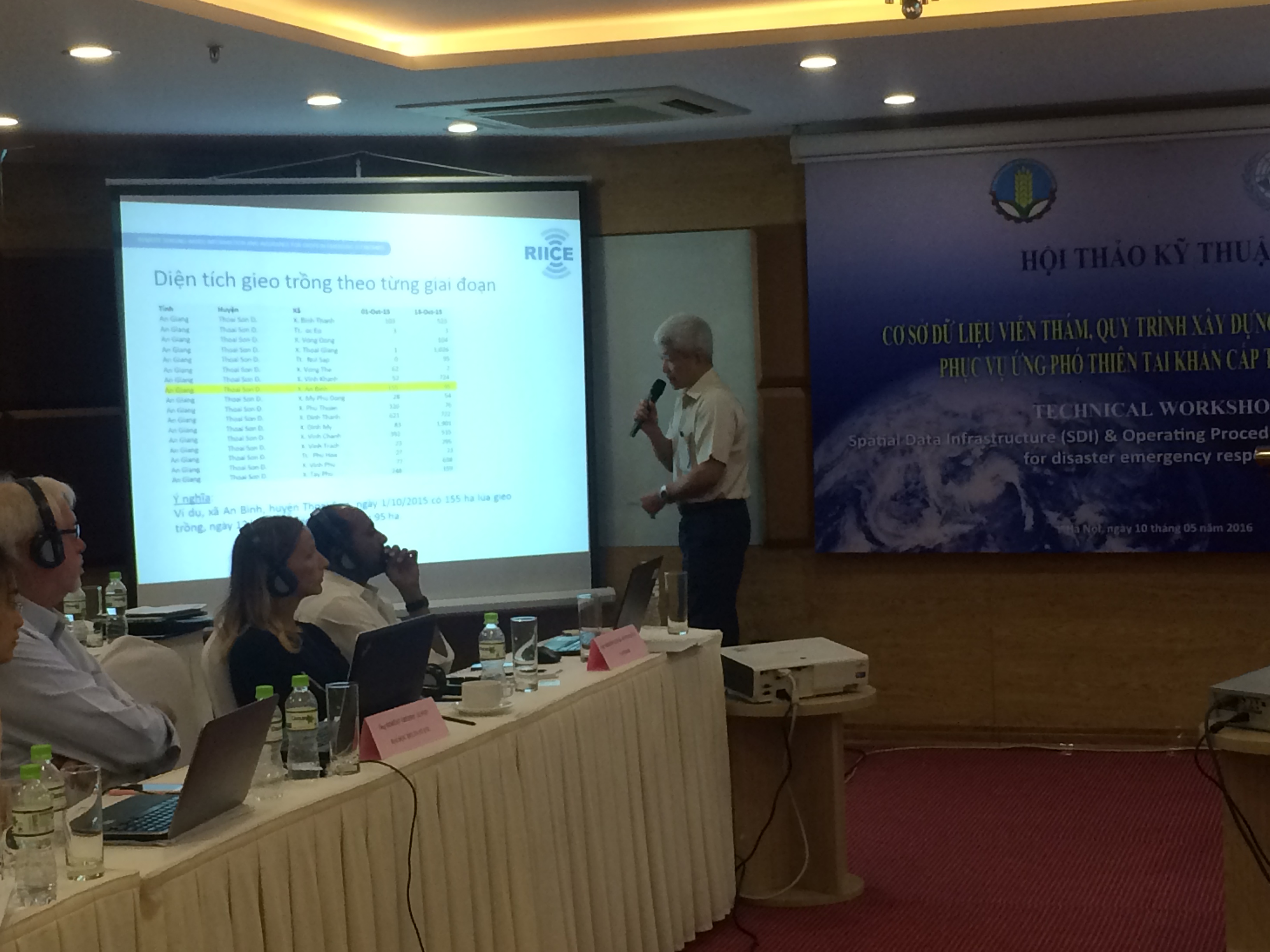 The participants include representatives from management agencies, Institute from MARD, The Ministry of Natural Resources and Environment (MONRE), Viet Nam Academy of Science and Technology (VAST) and international experts from UN-SPIDER; Delta University, USA.