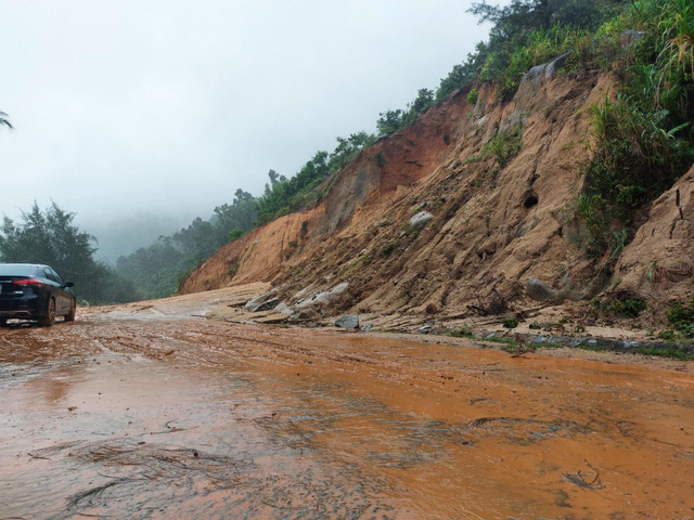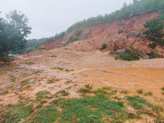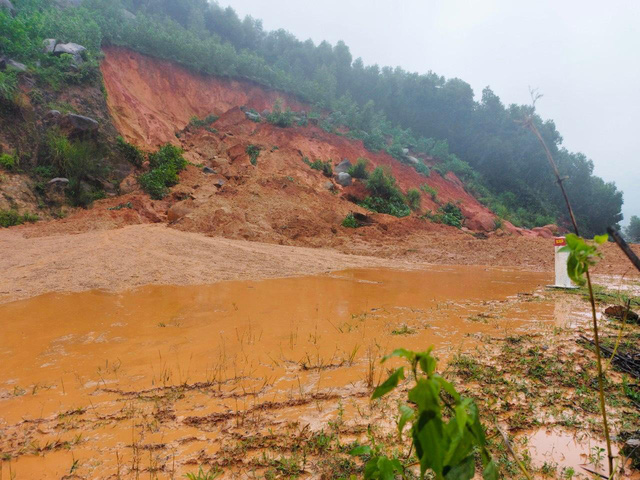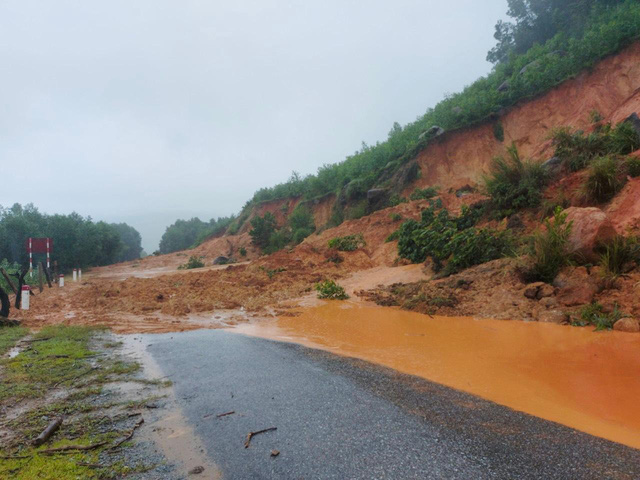 Due to the influence of heavy rains in recent days, some points on the coastal road of Thach Khe - Vung Ang (the section through village 6, Cam Linh commune, Cam Xuyen district, Ha Tinh province) suffered serious landslides. causing traffic disruption. There are dozens of m3 of soil and rocks and trees on the high cliffs have spilled onto the road surface. Vehicles from Cam Linh commune to Ky Anh district and vice versa cannot circulate. About 3km from this position, on the coastal defense route passing through hamlet 1, Cam Linh commune (Cam Xuyen district) to Ky Xuan commune (Ky Anh district), the rock on the high cliffs was eroded and fell. down the road, causing traffic jams.