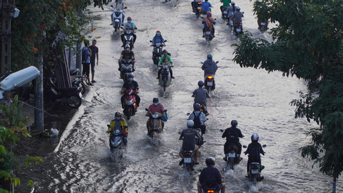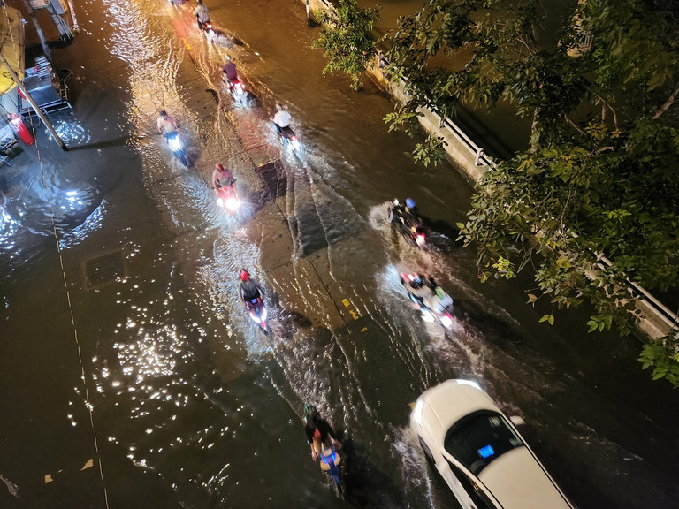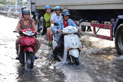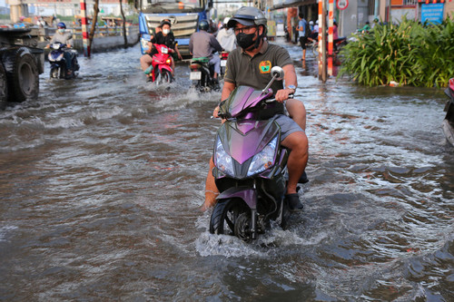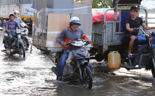 At 7:30 p.m., high tides flooded many low-lying areas in District 7 and Nha Be district of Ho Chi Minh City. Flooded water makes it difficult for people to know which road, river or canal is which.