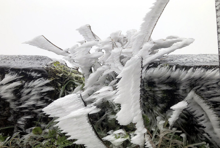 Intense cold air causes severe cold, damaging cold and the possibility of ice and snow. Photo of frost on Mau Son peak during the cold weather on January 25