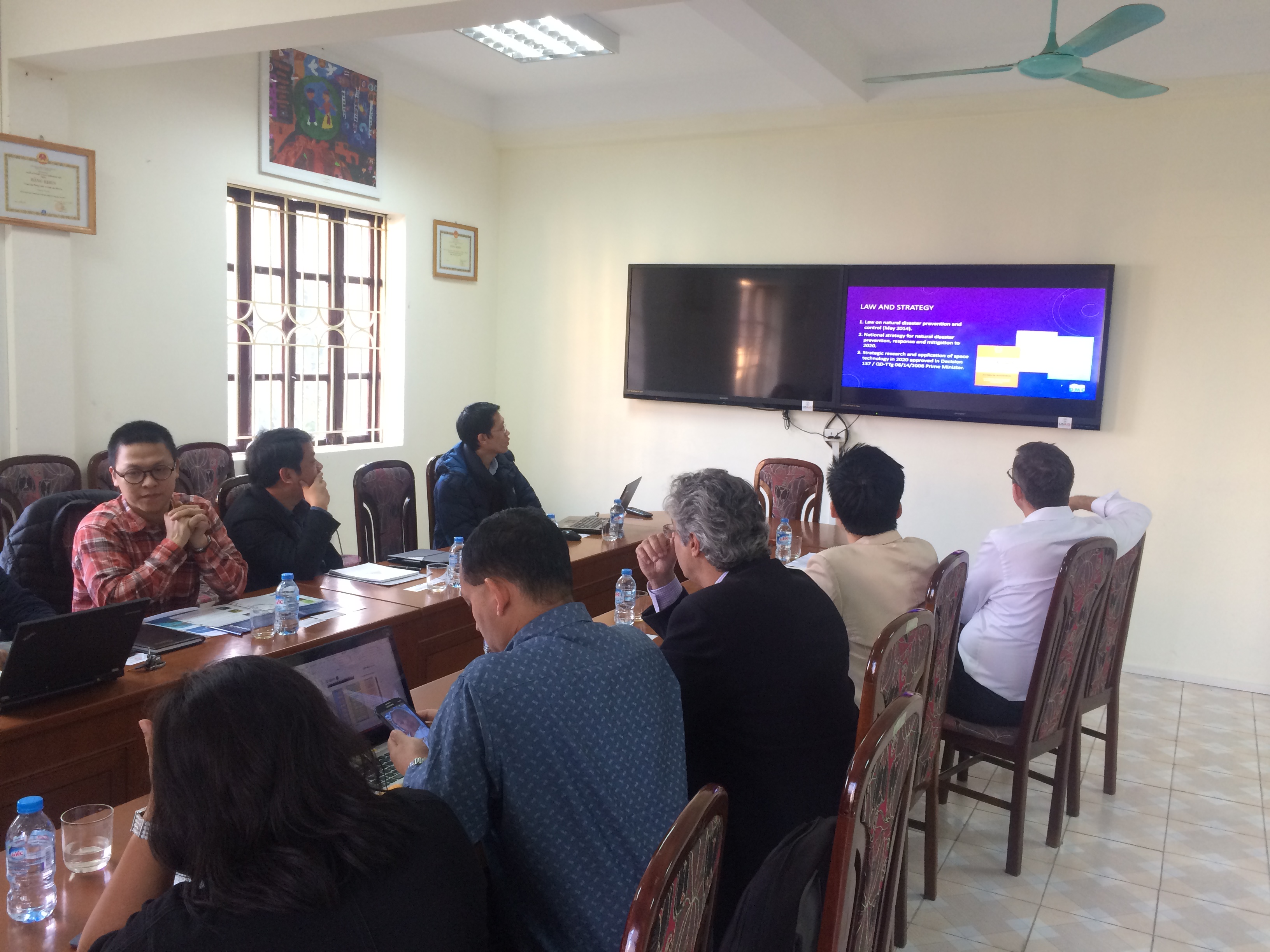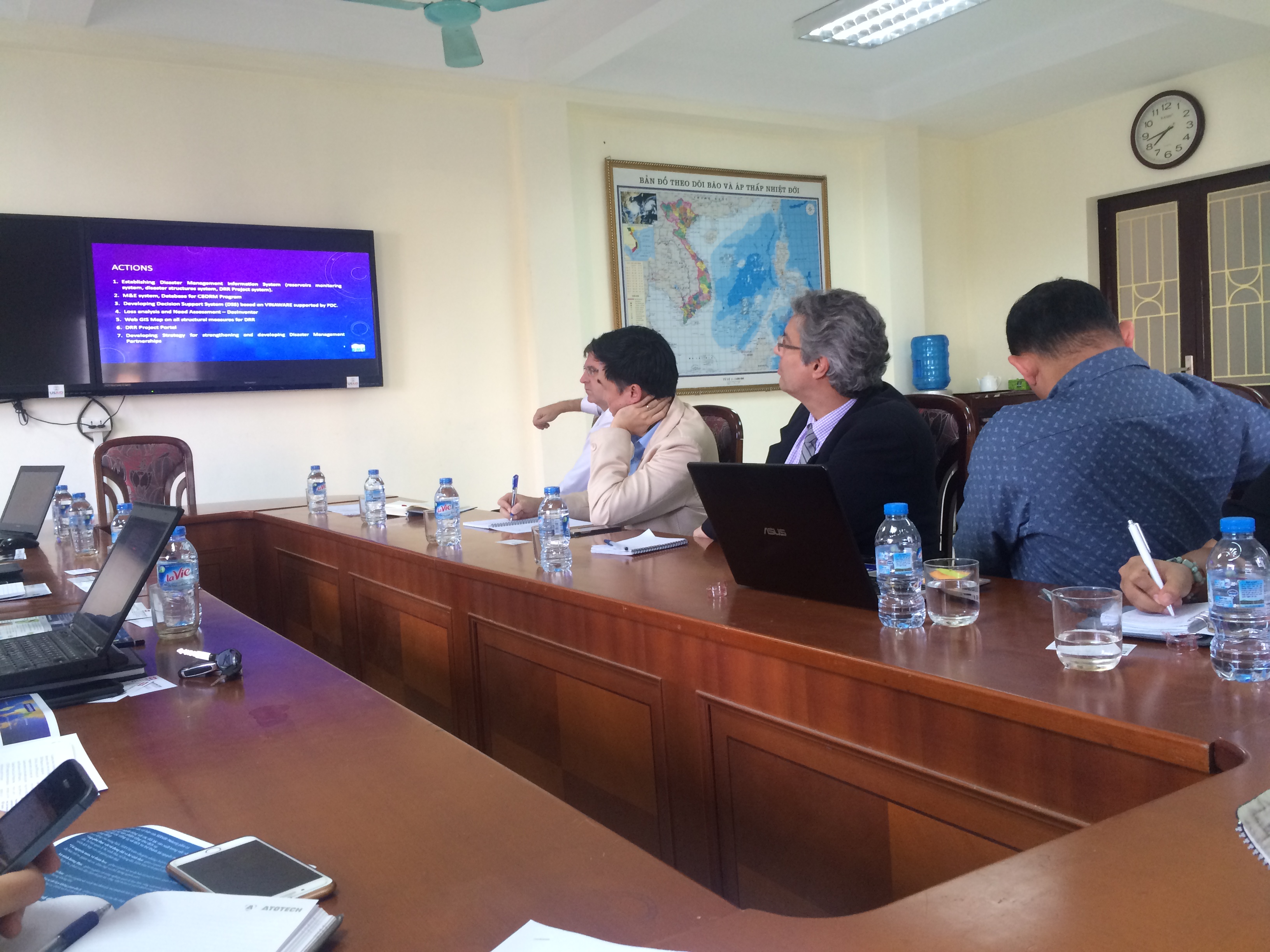 DMC introduced the functions and tasks; the activities was carried out in the framework of cooperation with United Nations Platform for Space-based Information for Disaster Management and Emergency Response ( UNSPIDER ), Space Technology Institute ( STI ), The Japan Aerospace Exploration Agency ( JAXA); plan of applying geospatial technology in disaster prevention and control. DMC identified the priorities of geospatial technology application in disaster prevention and control according to the functions and tasks of DMC in which emphasized the human resource development, data sources and sharing mechanism as well as the feasibility of the application of space technology in the research and monitoring some particular disaster types. DMC also recommended that the delegation consider the encouragement of research applications and proposal for Directorate of Water resources to support for salt intrusion, land slide, drought and fluctuations of the quantity and quality of water for socio - economic development in the Mekong River Delta.