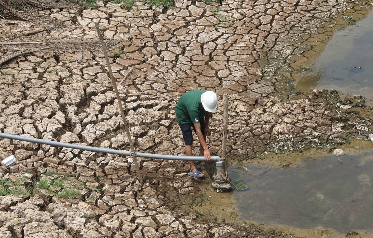 People cut every drop of water left on Go Cong canal. (Photo: Minh Tri / VNA)