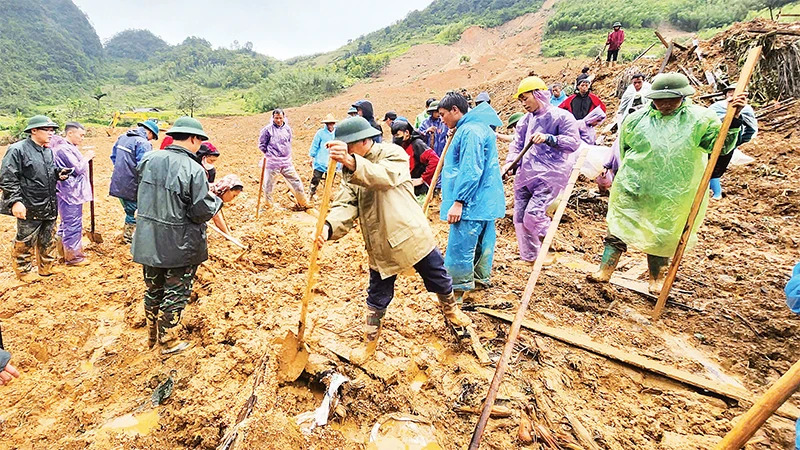 Cao Bang provincial forces search for missing victims of a landslide in Lung Ly hamlet, Ca Thanh commune, Nguyen Binh district.