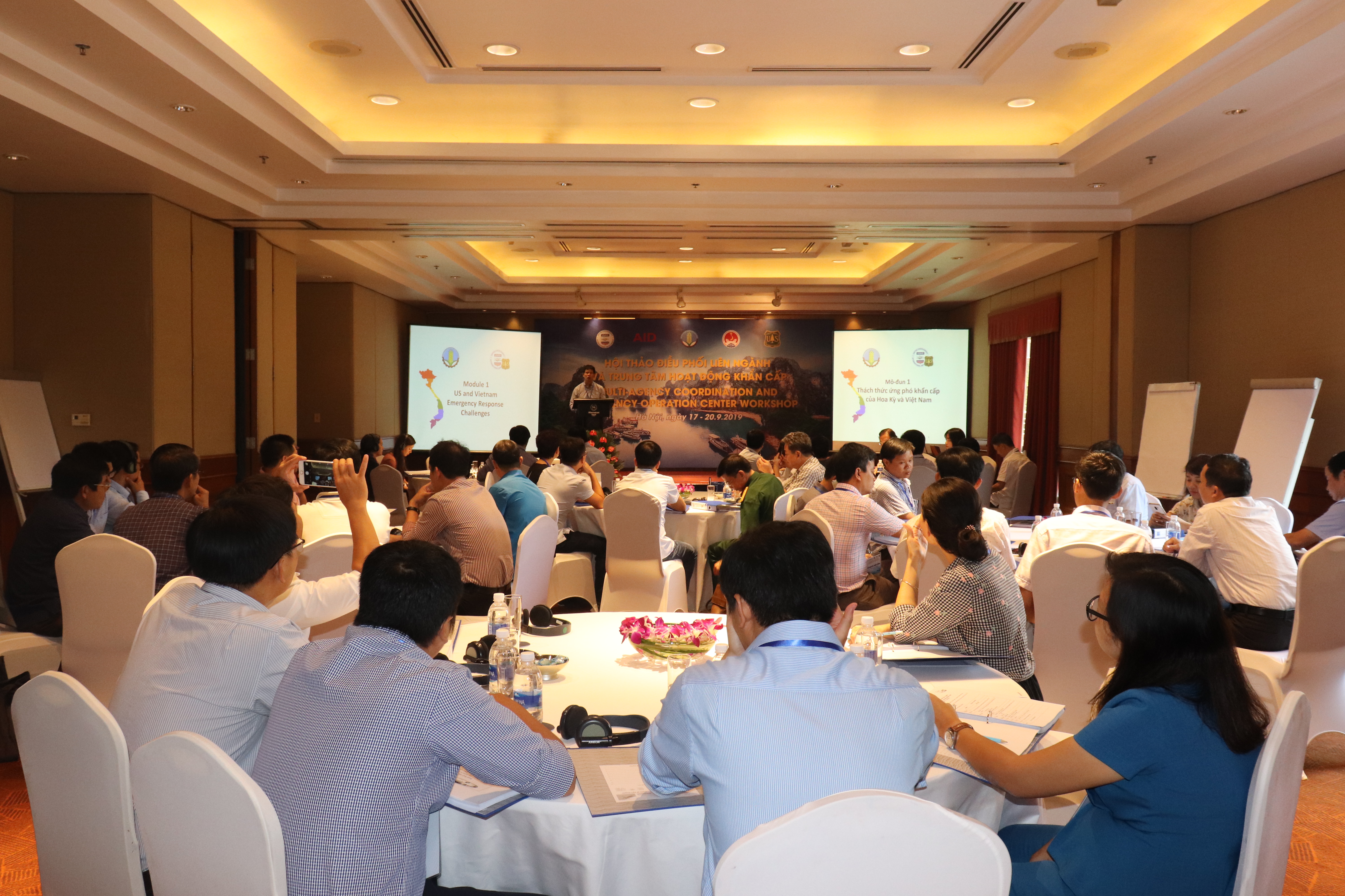 The training workshop “Multi-agency coordination and emergency operation center in natural disaster management” is the last activity in 2019 under the framework of the cooperation between the Standing Office of The Central Steering Committee for Natural Disaster Prevention and Control (SCNDPC) and The United States Forest Service (USFS). Within 4 days of training course, experts deliver knowledge on inter-sectoral coordination, organization of standing office when emergency natural disaster occurs and methods in providing information about natural disaster incidents to community.