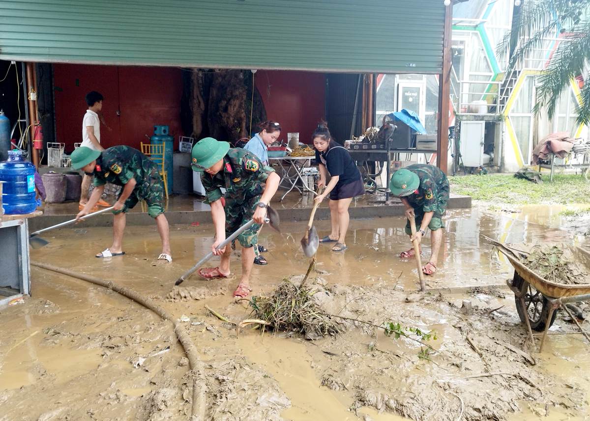 Officers and soldiers of the Provincial Military Command help people in Ha Giang city overcome the consequences of natural disasters.