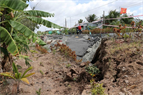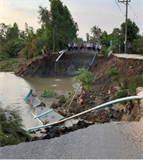 Những ngày gần đây, hầu hết hệ thống sông rạch vùng ngọt hóa Gò Công tỉnh Tiền Giang đã cạn đáy dẫn đến sụp lở ven bờ rất nghiêm trọng. Cụ thể, có một điểm sạt lở lớn vừa xảy ra tại tỉnh lộ 873 thuộc xã Bình Xuân, Thị xã Gò Công đã cắt đứt đường giao thông.