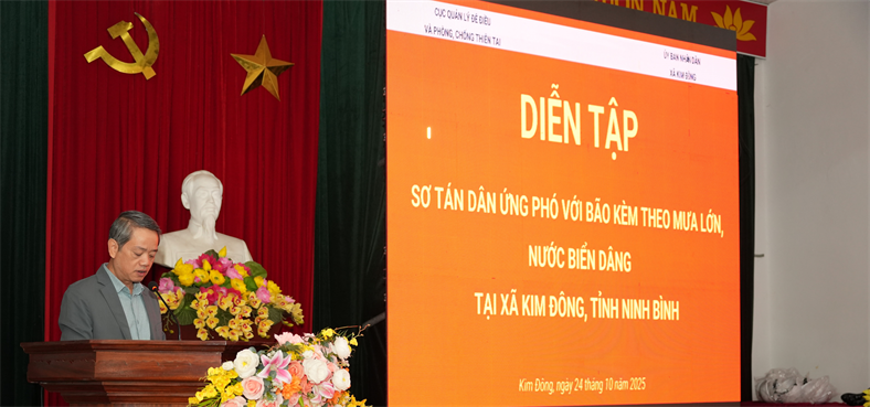 Diễn tập sơ tán dân phòng, chống bão, kèm mưa lớn, nước biển dâng tại xã Kim Đông , tỉnh Ninh Bình